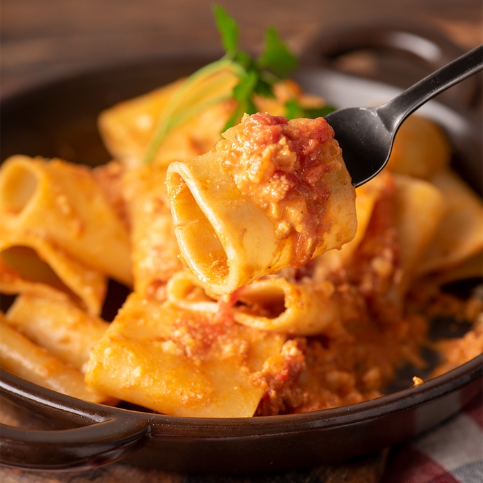 高級感のある紅ずわい蟹のおいしさをぎゅっと詰め込んだ贅沢なパスタソースです。トマトの爽やかな酸味と紅ずわい蟹のジューシーな甘みが見事に調和。さらにかに味噌を加えることでコク深い旨みが加わり、紅ずわい蟹の豊かな風味と味わいを存分にお楽しみいただけます。合わせるパスタはソースが絡みやすい幅広タイプがおすすめ。紅ずわい蟹のほぐし身がたっぷり加えられた濃厚なトマトクリームソースを麺に絡めれば、レストランで味わうような本格的な一皿に早変わり。そのおいしさに思わず笑みがこぼれます。