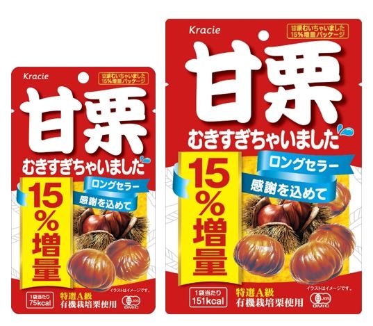 甘栗むきすぎちゃいました!!発売から27周年 ロングセラーの感謝を込めて、「甘栗むいちゃいました」15%増量で発売!