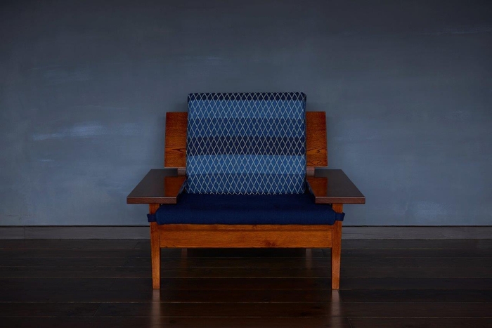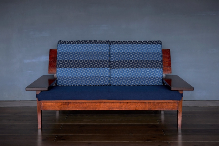 日本で古くから用いられ、現代でも広く愛される藍染めの布。そして、日本の森で時間をかけて育った楢(ナラ)に漆塗りを施した、美しいソファが完成しました。