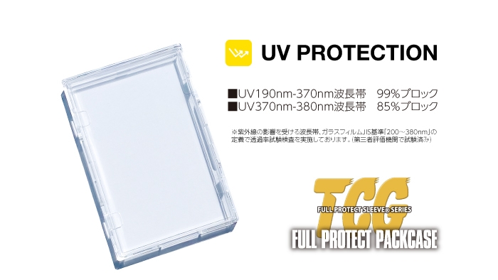 高い紫外線の波長帯をブロックできるフルプロテクトパックケースに収納することで、鑑定済みケースごと紫外線から守ることができます。