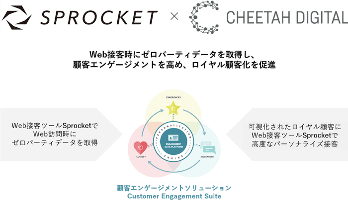 おもてなしデザインプラットフォーム『Sprocket』(スプロケット、以下 Sprocket)を提供する株式会社Sprocket(本社:東京都目黒区、代表取締役 深田 浩嗣)は、現代のマーケティング担当者向けに、次世代の顧客エンゲージメントソリューションを提供するチーターデジタル株式会社(本社:東京都中央区、日本法人代表: 白井 崇顕、以下チーターデジタル)との協業に合意したことを発表しました。Webサイト上の顧客行動を理解し、最適なWeb接客を提供するSprocketと、次世代マーケティング プラットフォーム Cheetah Digital Customer Engagement Suite (以下 Customer Engagement Suite)をデータ連携することで、消費者ニーズに対して一貫した顧客体験を提供する仕組みを構築し、マーケティングROIの更なる向上を実現させます。