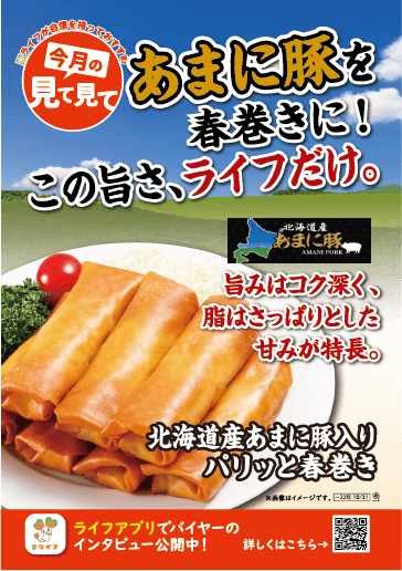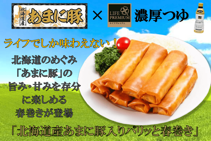 【首都圏ライフ】ライフオリジナル「あまに豚」×ライフプレミアム「濃厚つゆ」=絶品春巻きの誕生⁉「北海道産あまに豚入りパリッと春巻き」新発売!