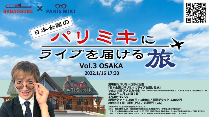 トロンボーンプレイヤー馬場桜佑氏 「日本全国のパリミキにライヴを届ける旅」 2022年1月16日17:30~ メガネのパリミキ アメリカ村店 ライヴ開催決定!