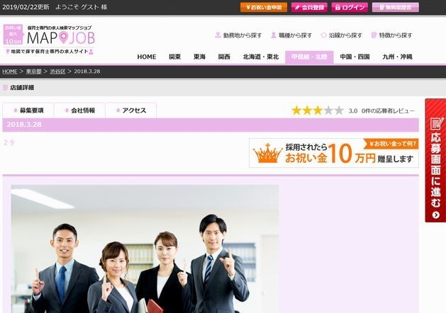 マップジョブ保育士(mapjob保育士)で、保育士の求人を探し、入社すれば入社お祝い金(最大10万円)がもらえます。