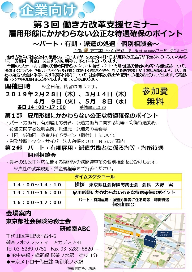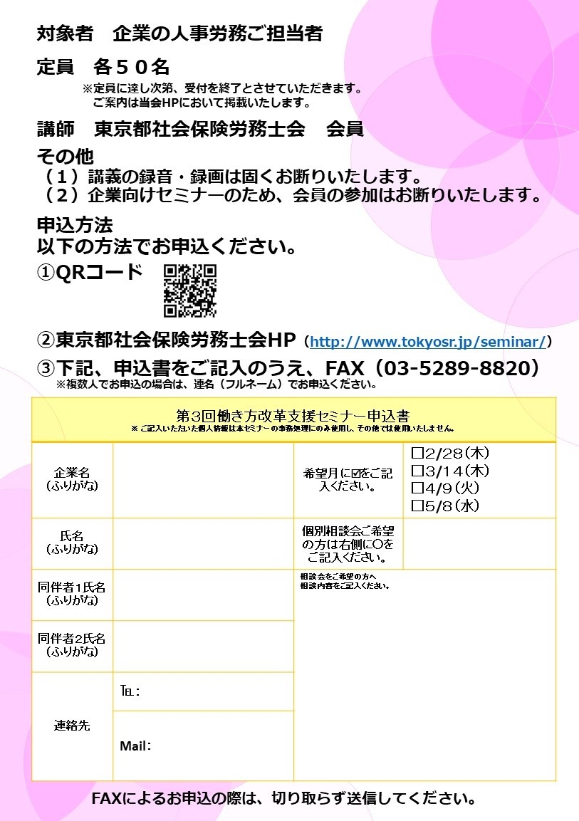 ●申込 東京都社会保険労務士会HP( http://www.tokyosr.jp/seminar )