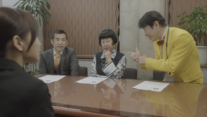 主人公の勤める会社の役員で面接官役をやらせていただきました。