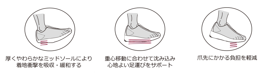高弾力ミッドソールが、未体験の優しい履き心地を再現