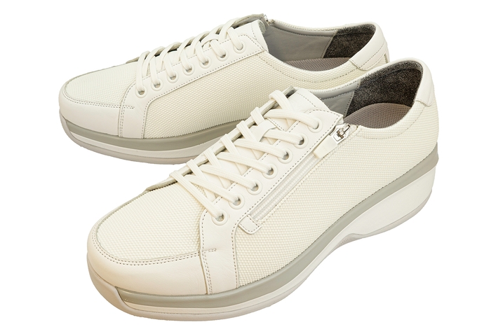 外反母趾や足底筋膜炎、魚の目、マメ、タコ、痛み、疲れ、むくみなど、硬く平らな地面ばかり歩いている現代人の足はトラブルがいろいろ。「エバーメイト」は、そんな悩みのある足にも優しい、履きやすさと歩きやすさを追求しました。最大の特長は、驚くほどやわらかな履き心地にあります。弾力性に優れた低密度ポリウレタンをミッドソールに採用し、充分な厚みを持たせることで、高い衝撃吸収性と足圧分散を実現。足底にかかる負担を軽減し足指と足裏の自然で活発な運動を促します。今までいろいろなコンフォートシューズを試してきた方にも、その違いを実感していただきたい新感覚の履き心地です。