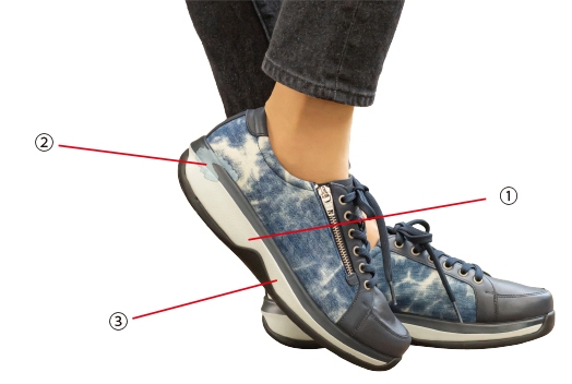 ②横揺れを抑えて歩行を安定させる、EVA素材を採用したスタビライザー
