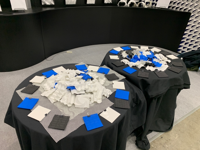 設計や製造が難しい3次元立体形状の装飾品を平面シートから作り出す「SORIORI」のノウハウが詰まった3次元凹凸形状サンプルを多数展示いたしました。実際にライトを当て、 光の当たり方による陰影の美しさなどを体感していただき、大変ご好評いただきました。