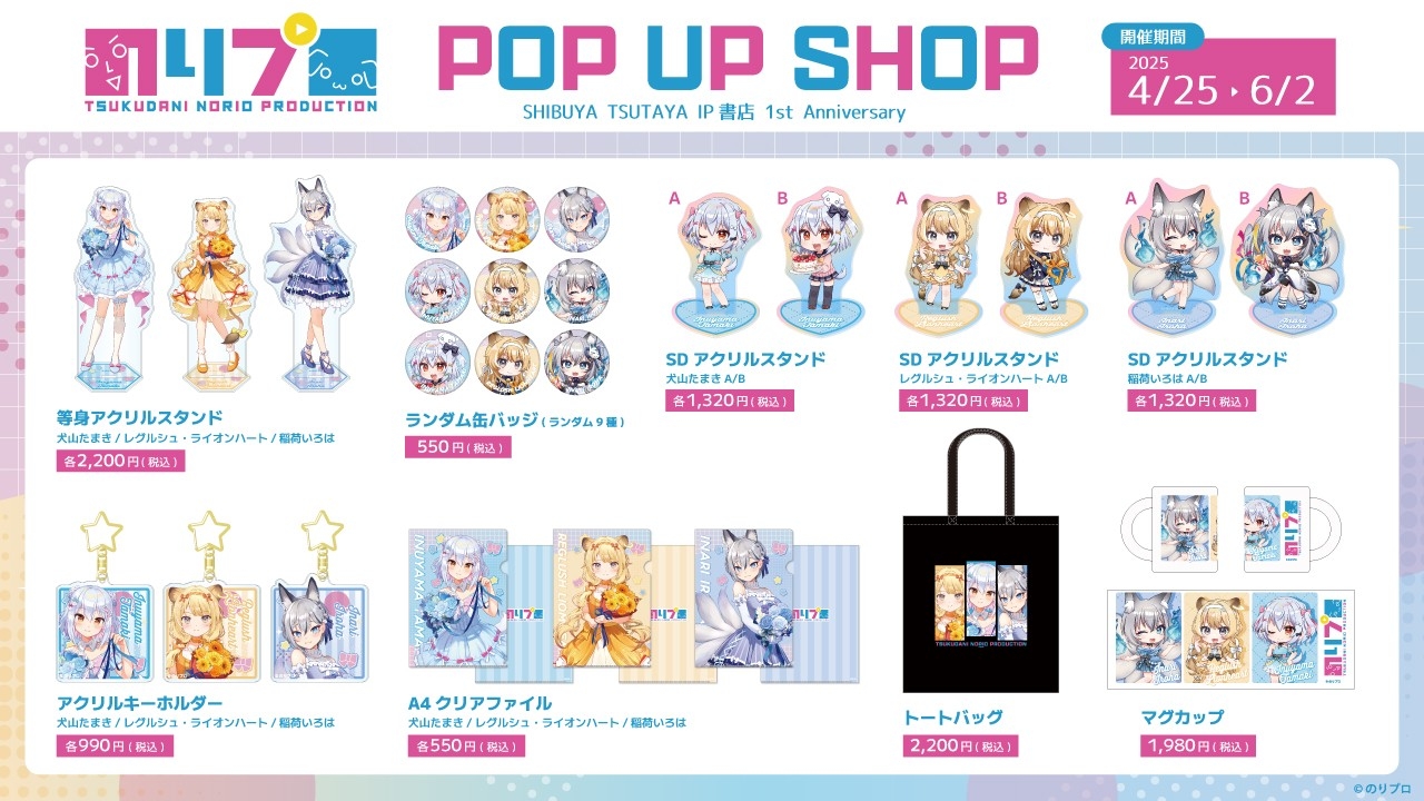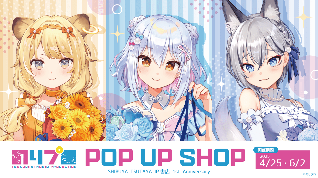 2025年4月25日(火)より、VTuber事務所『のりプロ』のPOP UP SHOPがSHIBUYA TSUTAYA 6階IP書店で開催決定!