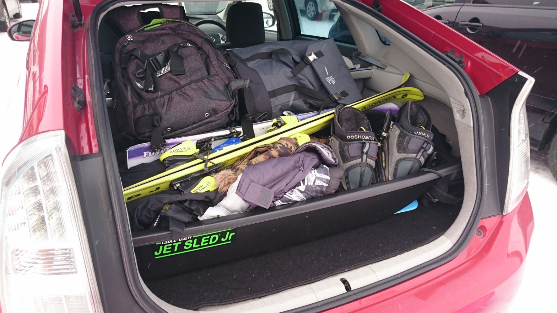 一番大きなXLサイズは全長167cm、幅78cm、深さ30cmもあり、大人が3人座れるほどの大きさで、たくさんの荷物を運搬することが可能です。サイズはXLサイズ、SUVサイズ、1サイズ、Jrサイズの4サイズ、一番小さなJrサイズは全長109cm、幅53.3cm、深さ20cmでプリウスなどの小型車のトランクにもおさまるサイズです。