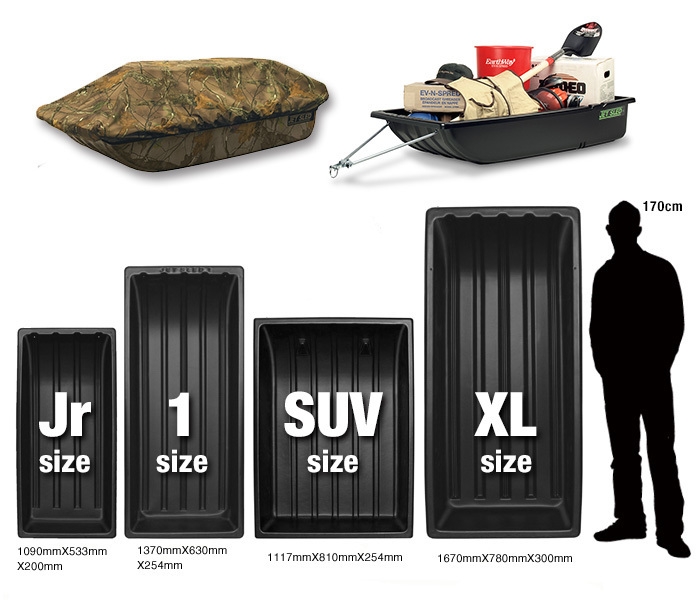 本体に荷物を載せた時の荷物の脱落を防いだり、降雨降雪時に荷物を守るためのカバー、スノーモービルやATVと安全に連結させるための牽引用ヒッチ、雪上以外で使用した時のソリ本体底面の摩耗を防ぐためのウェアバーなどの別売品も用意しております。