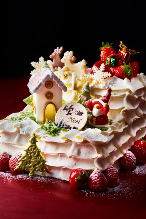 ふんわりと焼き上げた自慢のスポンジ生地に、スライスした苺を惜しみなくサンドし、2種類のクリームをブレンドした口解けの良い生クリームで仕上げたクリスマスパーティを彩る豪華な2段重ねのスクエア型ショートケーキです。ケーキの上に、サンタクロースやトナカイ、クリスマスツリーなどを飾り付け、まるでサンタさんが街へやってきたかのような雪景色が幻想的なクリスマスケーキは、長年培ってきた華やかな生クリームの絞りの技術や優しい味わいを存分に楽しむことができる、細部までこだわり抜いたアニバーサリーの真骨頂ともいえる商品です。