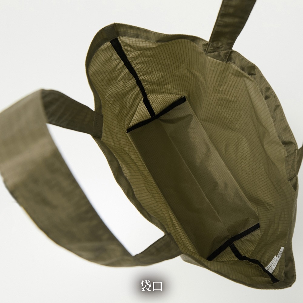 本体にはナイロンのリップストップ生地を採用。引き裂きに強く、軽量で丈夫なつくりが特長です。さらに裏地にはアクリルコーティングを施すことで耐久性を高め、毎日の使用にも安心。気兼ねなく使える素材感と機能性を両立しました。