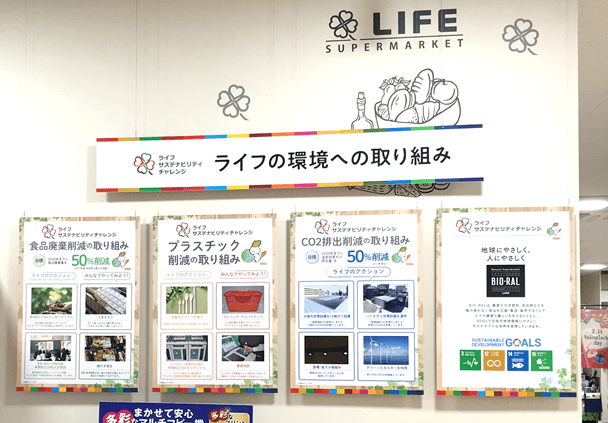 ライフで取り組んでいる環境取り組みについてお客様にお知らせするため、イートインスペースにポスターを掲示いたします。