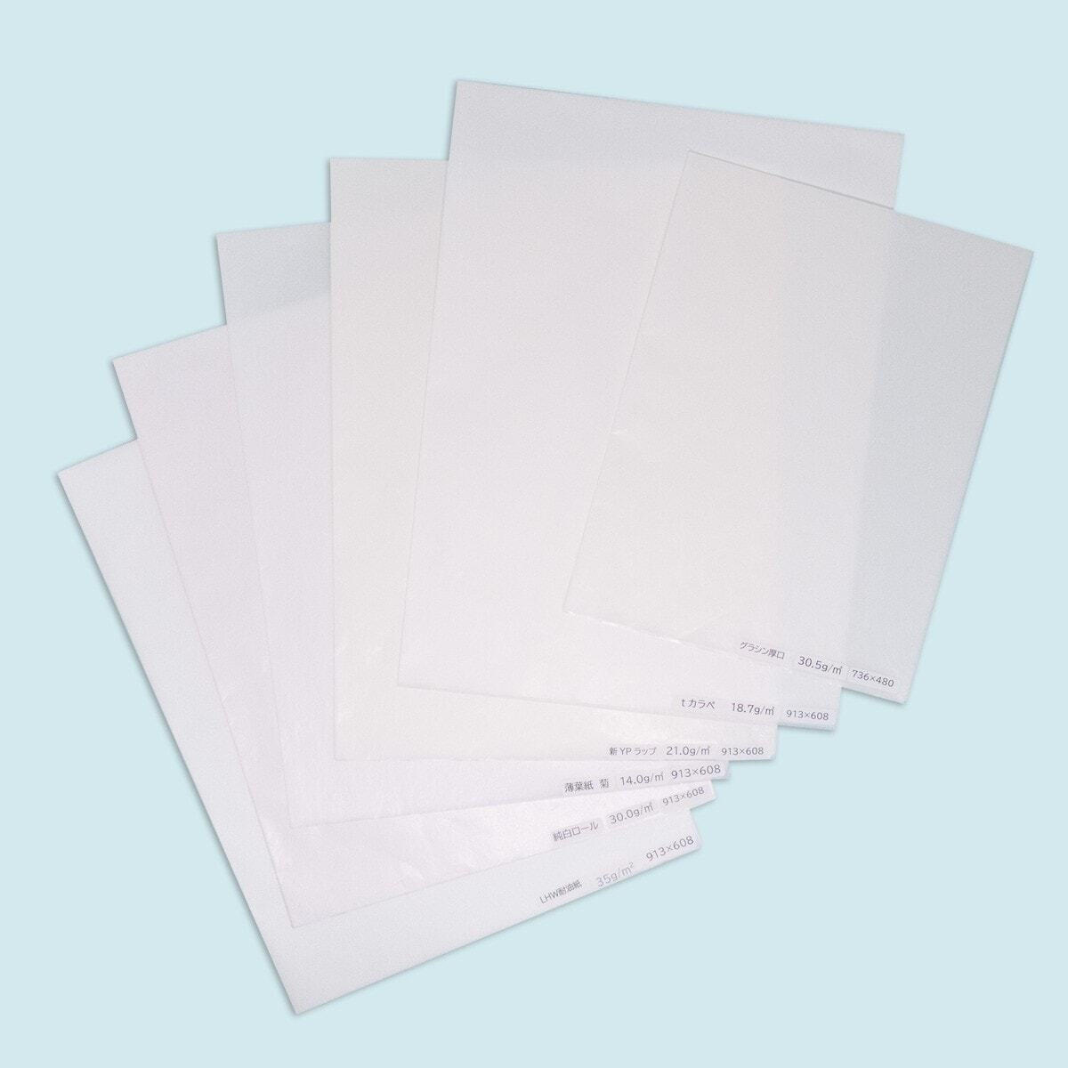 ●グラシン紙 薄口28.5g/m2・厚口30.5g/m2(厚さ2パターン)