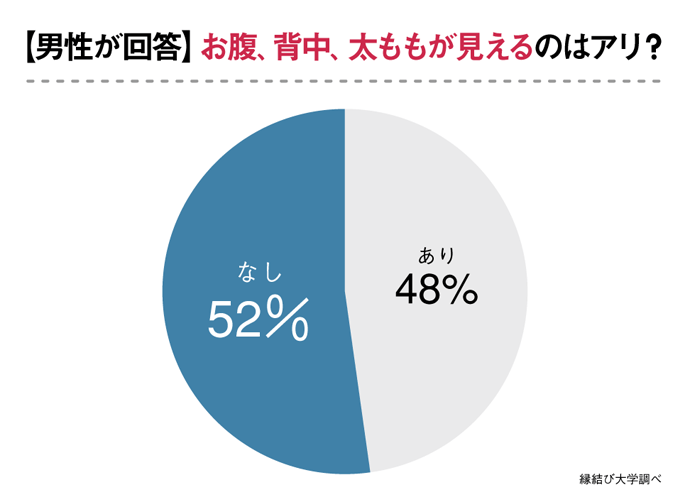 ・半数以上の男性が、お腹や背中、太ももが見えるのも出し過ぎだと感じている