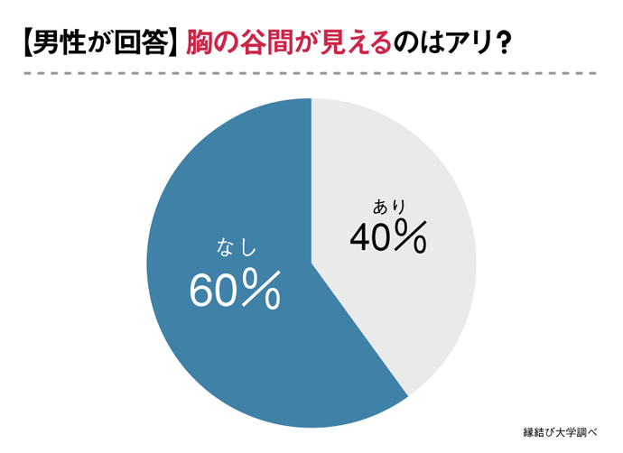 胸の谷間が見えているのがOKだったのは40%で、意見が分かれる結果となりました。