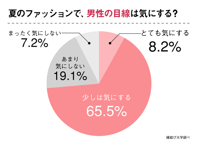 露出度が高い服を着たいか着たくないかは、他人の目線が大きく影響します。そこで女性が夏のファッションを考えるときに、どの程度男性の目線を気にしているかも聞いてみました。