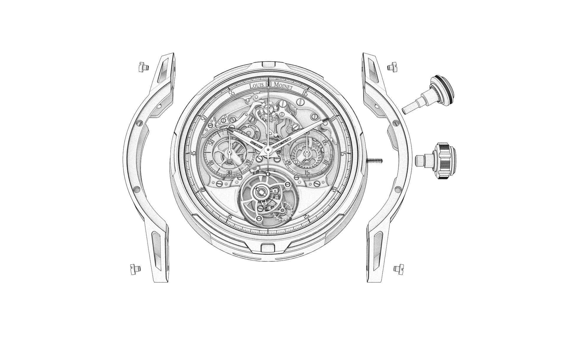 トゥールビヨンの生みの親・アブラアン-ルイ・ブレゲは、時計師 ルイ・モネの親友であり、切磋琢磨するライバルでもありました。ルイ・モネが生み出したクロノグラフと、アブラアン-ルイ・ブレゲが生み出したトゥールビヨン。『インパルション』は、二人の天才時計師の魂が宿った究極のメカニカルタイムピースです。