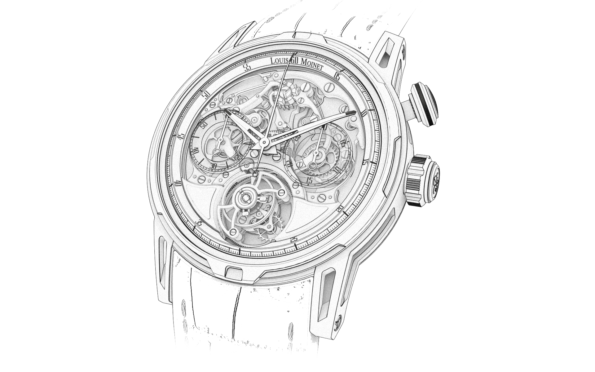 ルイ・モネは、ブランドのルーツである時計師 ルイ・モネによる世界初のクロノグラフ発明から200周年にあたる2016年に、『メモリス』をリリースしました。クロノグラフ機構を文字盤側に配置することで、クロノグラフの魅力を視覚的に堪能できる時計が誕生したのです。