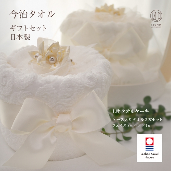 高級パジャマを年間17,000枚販売する人気パジャマ専門店「パジャマ屋IZUMM」から、今治タオル認定のオリジナルデザインタオル「メレンゲ」でウェディングケーキの形にした”タオルケーキ2段”をお届け。
