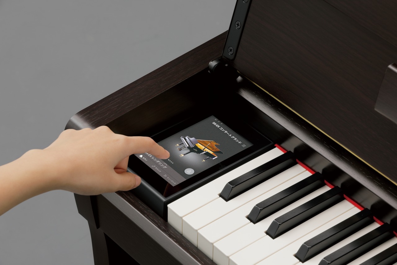 アップライトピアノに近づきながらもコンパクトでモダンな外観に仕上げました。演奏中に目に映るピアノの美しさにこだわりながら、すっきりと洗練されたリビングに馴染むデザインとすることで、気持ちよく演奏をお楽しみいただけます。カラー液晶タッチパネル搭載