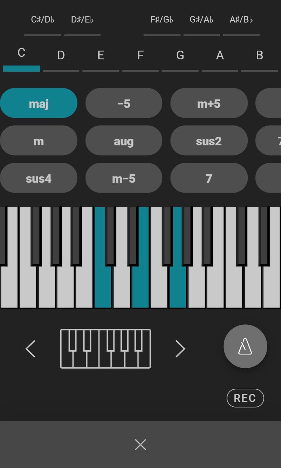 タッチパネル上に弾きたいコードの鍵盤位置に色がついて表示されますので、「コードについてよくわからない」という方でもその箇所にあわせて指を置くことで、自然とコードを身に着けることができます。