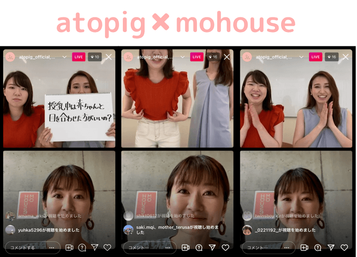 お子さま向けのベタつかないワセリン泡『アトピッグ』の公式インスタグラムアカウントにて、肌を見せず授乳できる授乳服『モーハウス』さんをゲストにお迎えし、【赤ちゃんのための授乳】をテーマに、8月25日(水)10時よりインスタライブを開催いたしました。