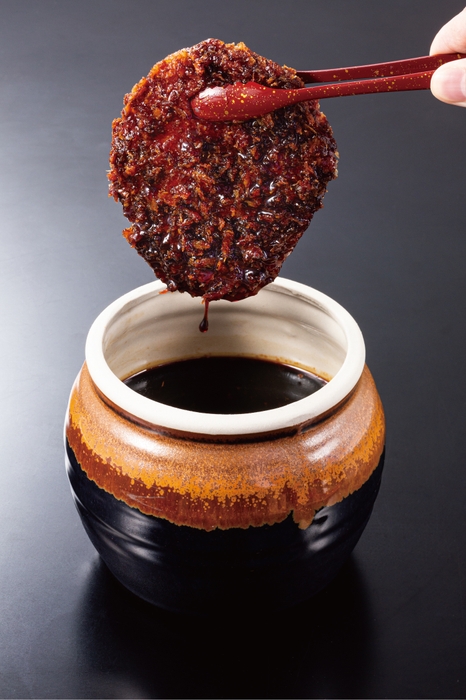 一般的なとんかつソースの粘度が高くこってりとした味わいに対し、醤油ベースの甘辛いタレにおろしニンニクを加え、さらにかつおや昆布など和風だしのエキスをベースに15種類もの調味料を特別な配合でブレンドした特製ソースは、濃厚な中にも甘みとニンニクのパンチを効かせ、食欲が減退する時期でもかぶりつきたくなる味わいに仕上げており、白米はもちろんのことキャベツとの相性も抜群です。