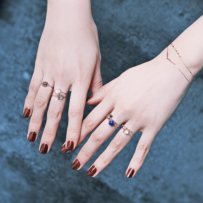 クラシカルな形のローズカットを使用した『VALOA-ヴァロア-』のシリーズは、リング、ネックレス、ピアスで様々なカラーストーンの商品ラインナップを展開。カラーストーンのクラシカルな石と合わさって、大人の女性の雰囲気を演出します。