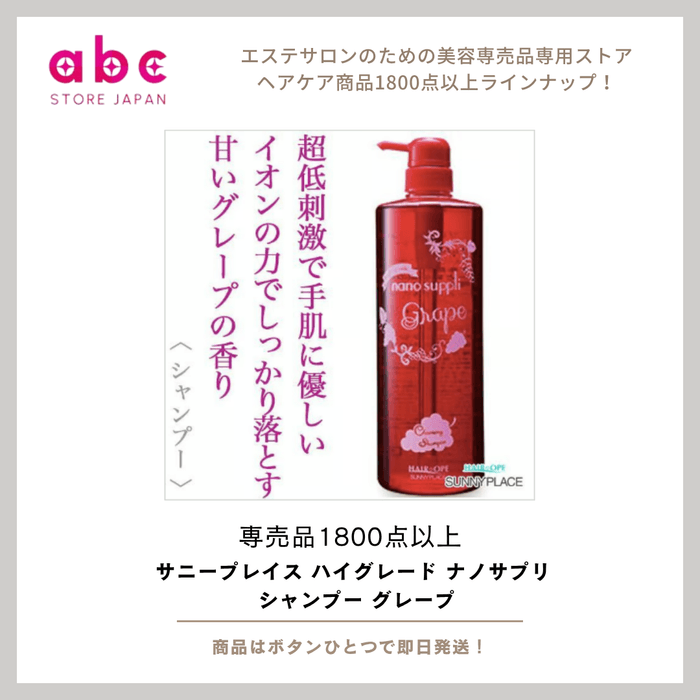 サニープレイスの「ハイグレード ナノサプリ シャンプー グレープ」は、甘くみずみずしいグレープの香りが特徴のサロン仕様シャンプーです。