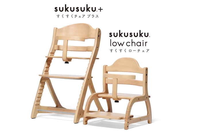 お使いいただいたお客様の声を取り入れ、暮らしや親子のコミュニケーションをより快適にできるようモデルチェンジを重ね、現在は「すくすくチェア プラス」というモデルでハイチェアを、さらに、床暮らしに特化した「すくすくローチェア」を販売しています。