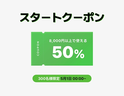 ①50%OFF(8,000円以上ご購入時、300枚限定)