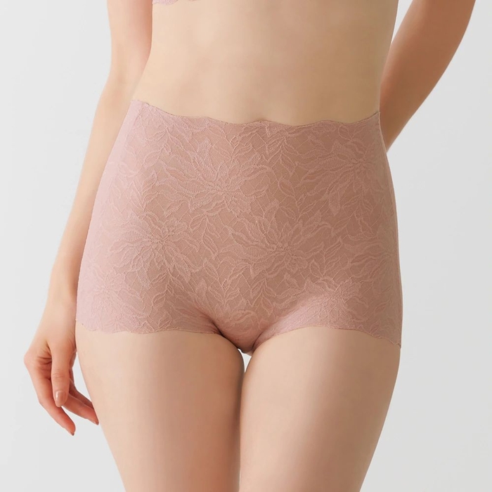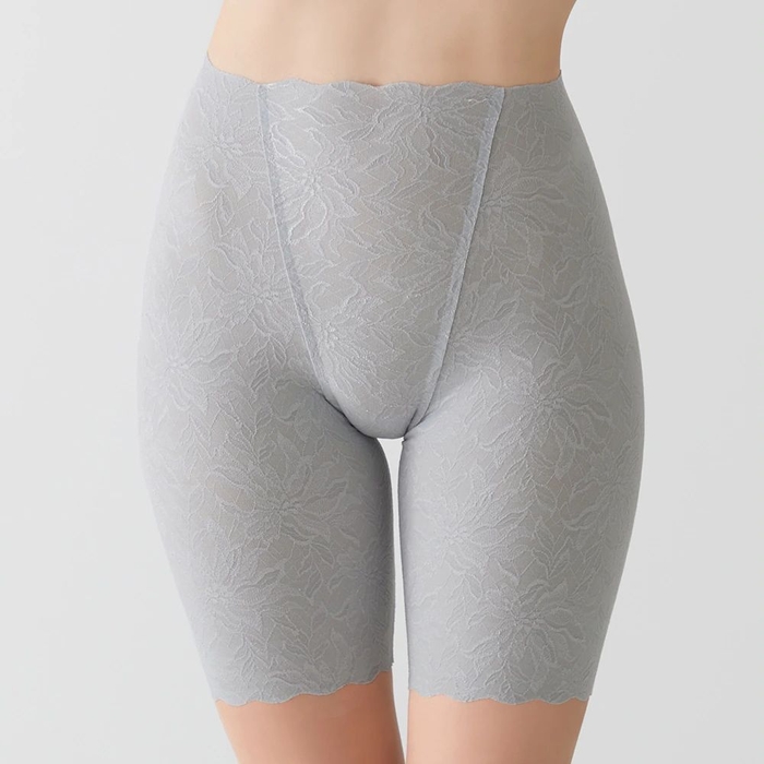 「ガードルファンデ」は、生地端が切りっぱなしのカットオフストレッチレースを使用した完全無縫製のソフトガードルです。やわらかな肌あたりでレース特有の凹凸感を感じにくく、縫い目や洗濯タグもなくして肌への刺激を軽減。ストレッチレースのほどよいパワーで、おなかとヒップまわりをやさしく補整します。ウエストや足ぐりにゴムを使っていないので、締め付けが苦手な方やガードル初心者の方にもおすすめです。本商品は、幾何柄のベースに大柄のお花を配置したレースを採用。エネルギッシュかつ繊細な印象に仕上げています。また、ボタニカル成分配合のローズヒップ加工で肌へのやさしさにもこだわりました。気分やアウターに合わせて選べるロングソフトガードルとショートソフトガードルをラインアップ。同じくカットオフレースを使用した完全無縫製の「ブラファンデ」と上下セットで着用いただけます。マチ付きで1枚で履くこともでき、薄着になるこれからの季節にパンティラインに悩む方にもぴったりのアイテムです。お腹、ヒップラインをすっきり補整する低刺激の「ガードルファンデ」で春のファッションをお楽しみください。