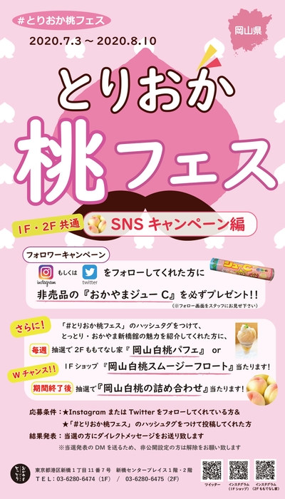 とっとり・おかやま新橋館のInstagram、Twitterのフォローや投稿で必ずもらえる!&抽選で白桃が当たる!