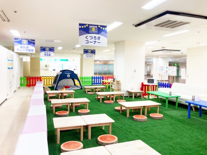 キャンプコーナーでは、室内でもアウトドア気分を味わいながらゆったりおくつろぎいただけます。テントを使ったごっこあそびにもオススメのエリアです。