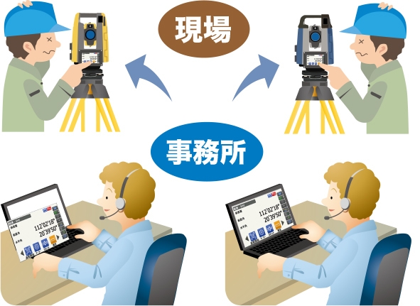 現場で操作に困った際など、その場から直接サポートセンターに問い合わせする事が出来ます。また、サポートスタッフは、クラウドを通じ測量機の状況を把握する事が出来ますので、より効率的なサポートを実現します。