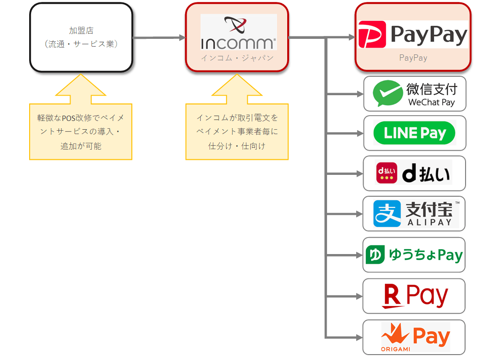 インコム・ジャパンは、既に「WeChat Pay」「LINE Pay」「d払い(R)」「Alipay」「ゆうちょPay」「楽天ペイ(アプリ決済)」「Origami Pay」のQR/バーコード決済とシステム接続しており、国内の業界大手ドラッグストア・家電量販店など1万店舗超で提供しております。「PayPay」は、日本全国どこでもキャッシュレスで買い物ができる世界を目指しており、“100億円あげちゃうキャンペーン”などのプロモーション施策でも大きな注目を集めています。