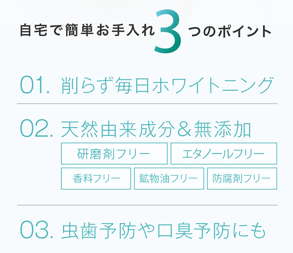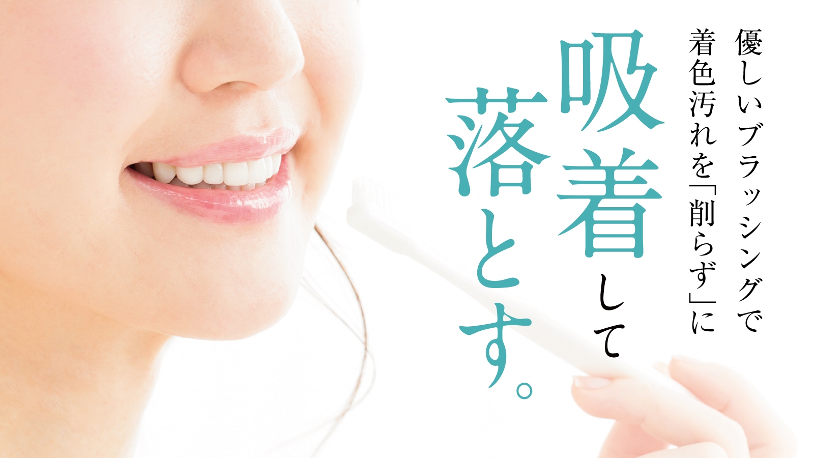 私たちが毎日行っている習慣の一つ、歯磨き。この歯磨きの多くが研磨剤でのブラッシングにより歯の表面のエナメル質が傷つきやすく、細かな傷にコーヒーやお茶などのステインが入り込み着色の原因になるということに着目し、ブラッシングすることで歯を削らず吸着して落とす歯磨きパウダーを開発しました。