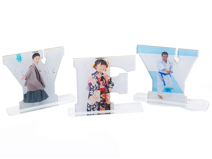 お子様のイニシャルに写真を閉じ込めて世界に一つだけのオリジナルグッズにすることができます。