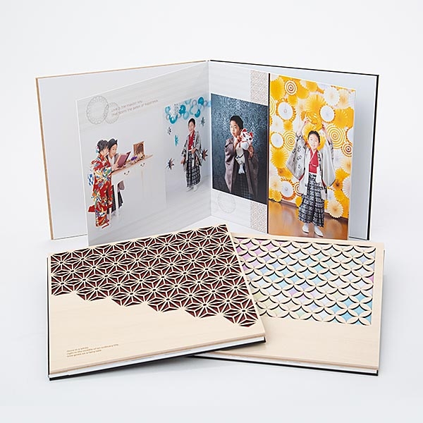 優しい天然木に京都らしい和柄を彫刻した立体アートが表紙のアルバムや、そのまま飾れる専用スタンドケース付きのレクエルドアルバム、高級感のある輝くアクリルキューブがセットになったアルバムなど、様々なタイプのアルバムをご用意しています。もちろん、アルバム写真の品質にもこだわっています。
