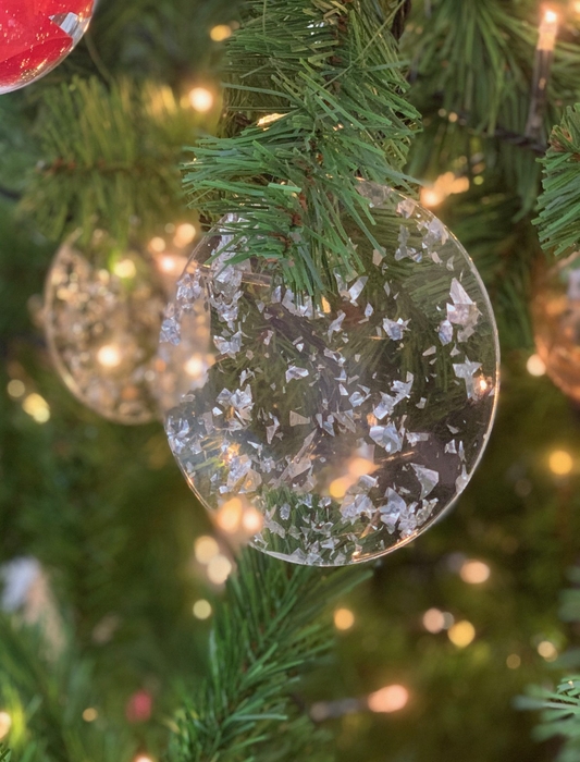 2024年5月に行われた樟葉駅前広場「ハピネスパークKUZUHAグラススクエア」の共用開始セレモニーで使用されたテープキャノン砲のテープを回収。2023年のクリスマス装飾でもコラボレーションしたTOKYO ACRYLとの協業によりテープをアクリル板に封じ込めたオーナメントを作成。銀色がキラキラと控えめな輝きを放つオリジナルアクリル板が完成しました。このオーナメントはクリスマス終了後に回収してワークショップ等で再活用予定です。