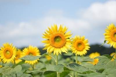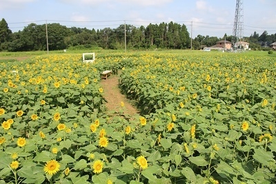 梅雨明けとともに元気いっぱい黄金開花 ひまわり迷路まもなく満開