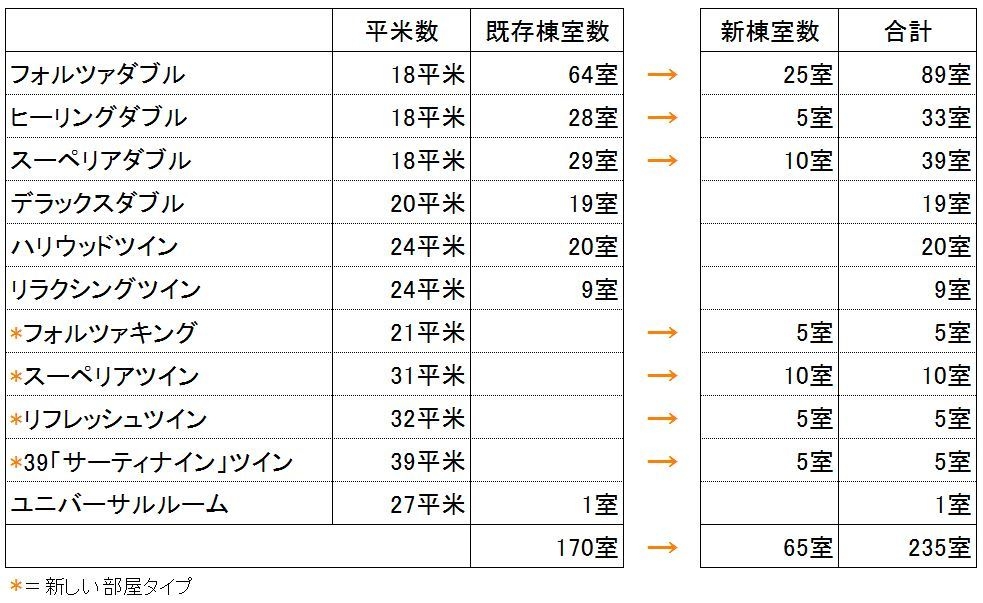 既存棟(170室)・新棟(65室)合わせ235室とホテルフォルツァ最大のホテルとなります。