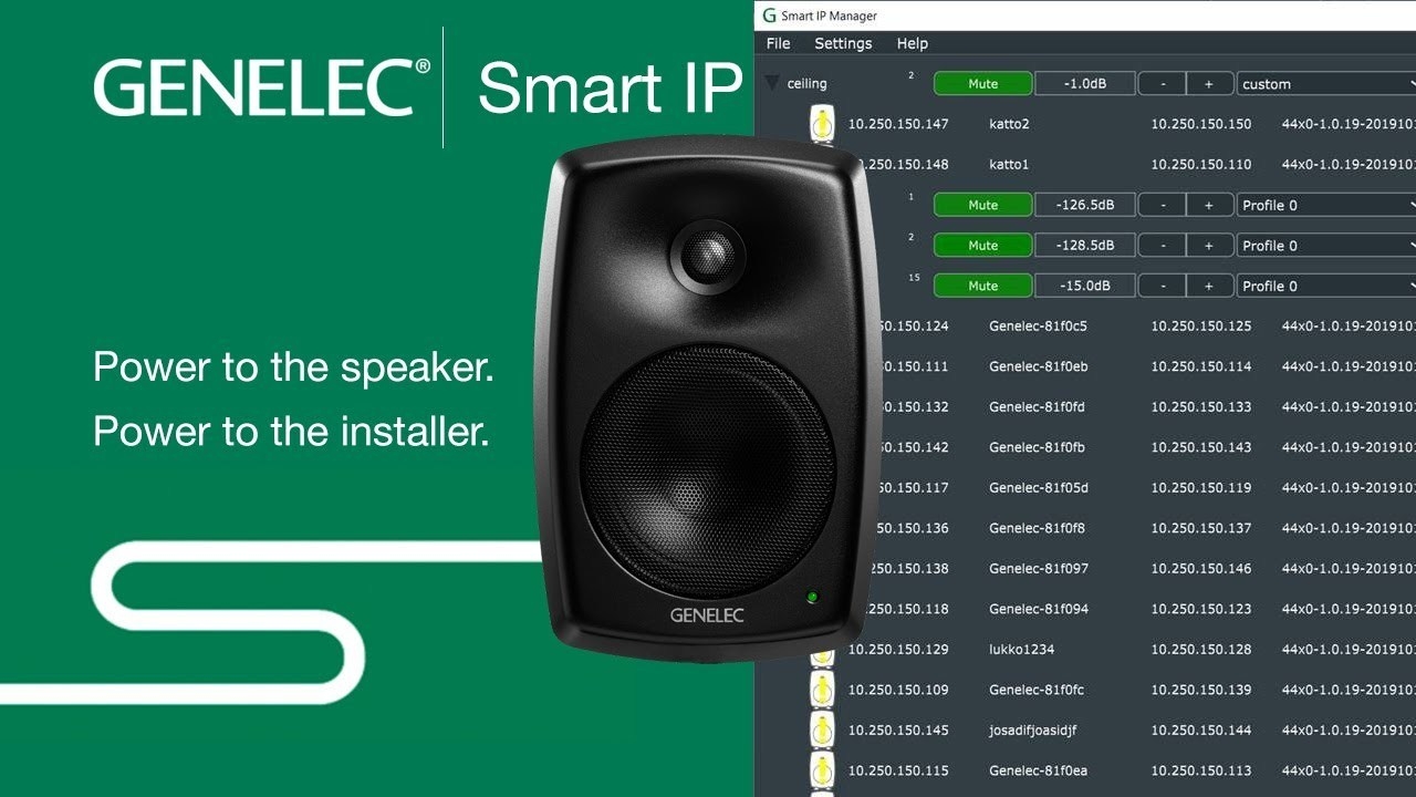 Genelecのスピーカー管理ソフトウェアはスタジオモニタースピーカー用としてすでに高いご信頼をいただいているツールですが、設備音響用途ならではのニーズに対応するための専用ソフトウェアとして新たに開発したのが『Smart IPマネージャー』です。