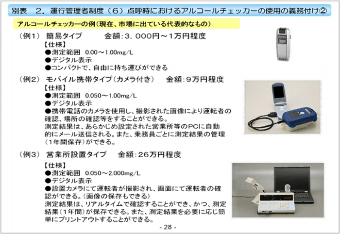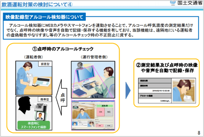 2011年以降、トラック・バス・タクシー業界では、点呼の際アルコール検知器を使用することが義務づけられています。しかし、2011年以前からIT点呼制度が『測定結果を、自動的に記録及び保存する』機能を規定しているのにもかかわらず、IT点呼以外の点呼では、使用されるアルコール検知器の要件として記録保存機能は今もってなお必須とされていません。