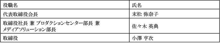 新経営体制は下記のとおりです。