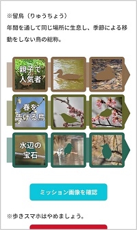 クイズを楽しみながら留鳥の美しさ、可愛らしさ、たくましさなどの魅力を知ることができるコンテンツ。